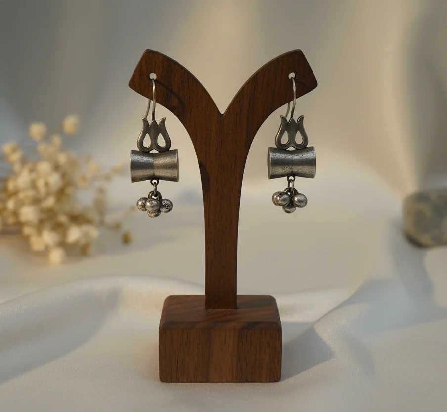 Oxidized Shiv-Shakti Damroo style Earrings with Ghungroo Charms.
