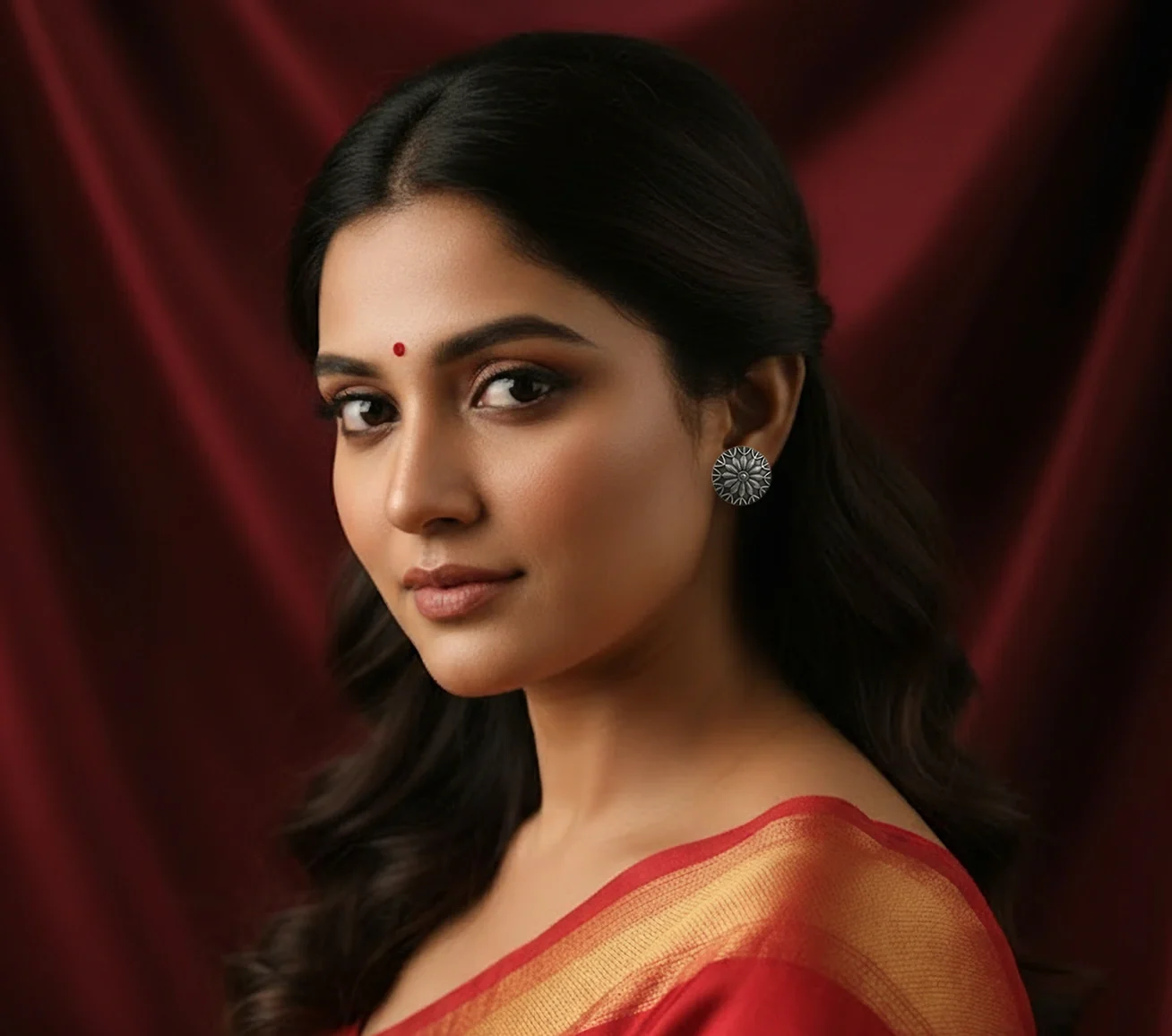 Add timeless elegance to your jewellery collection with these Oxidised Antique Floral Round Stud Earrings. Featuring a beautifully detailed floral design, these earrings offer a traditional yet versatile look that pairs well with sarees, kurtis, salwar suits, or even modern casual outfits.